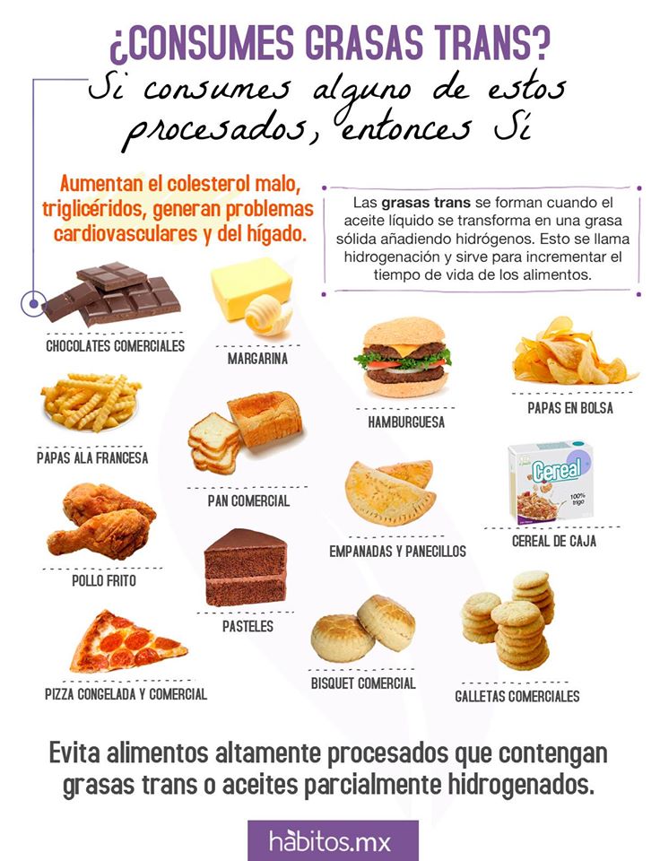 ° Grasas trans que se encuentran en la comida rápida y ausente en los alimentos etiquetados (prohibidas por ley)